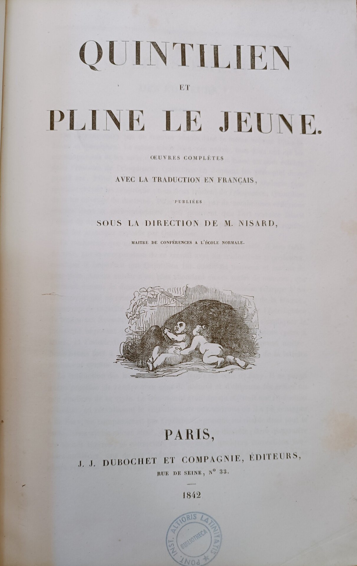 Oeuvres completes Quintilien et Pline le Jeune avec la traduction en francais publiees sous la direction de M. Nisard