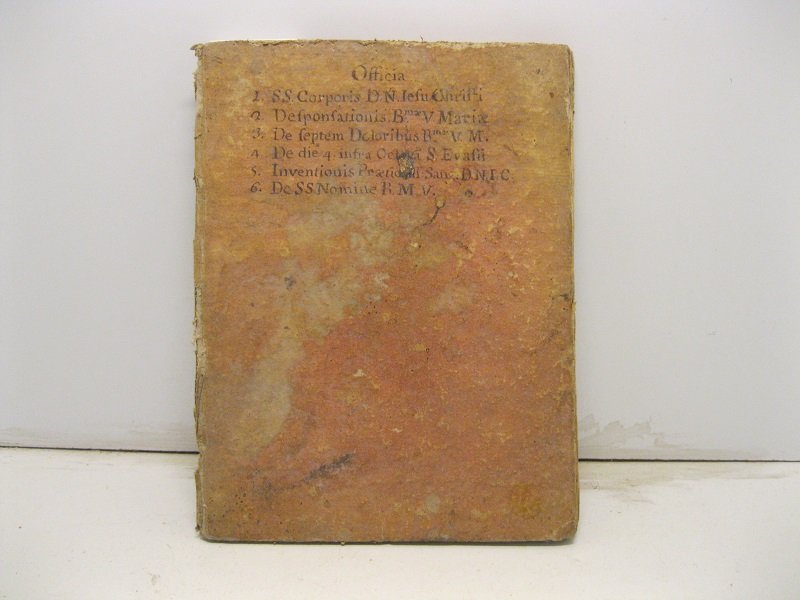 OFFICIA PROPRIA SANCTISSIMAE EUCHARISTIE. (SEGUE); Desponsationis B. V. Mariae. (SEGUE): De septem doloribus B. V. M. (SEGUE): De die 4 infra octava S. Evasii. (SEGUE): Officium proprium inventionis Praetiosissimi Sanguinis. (SEGUE) Officium de sanctissimo nomine B. V. M.