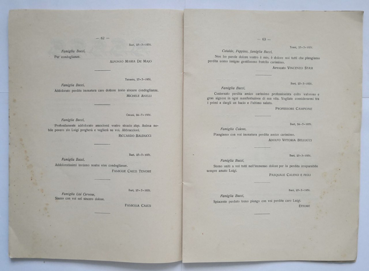 ONORANZE FUNEBRI E COMMEMORAZIONE CIVILE DEL DOTTOR LUIGI BUCCI, Ruvo di Puglia.