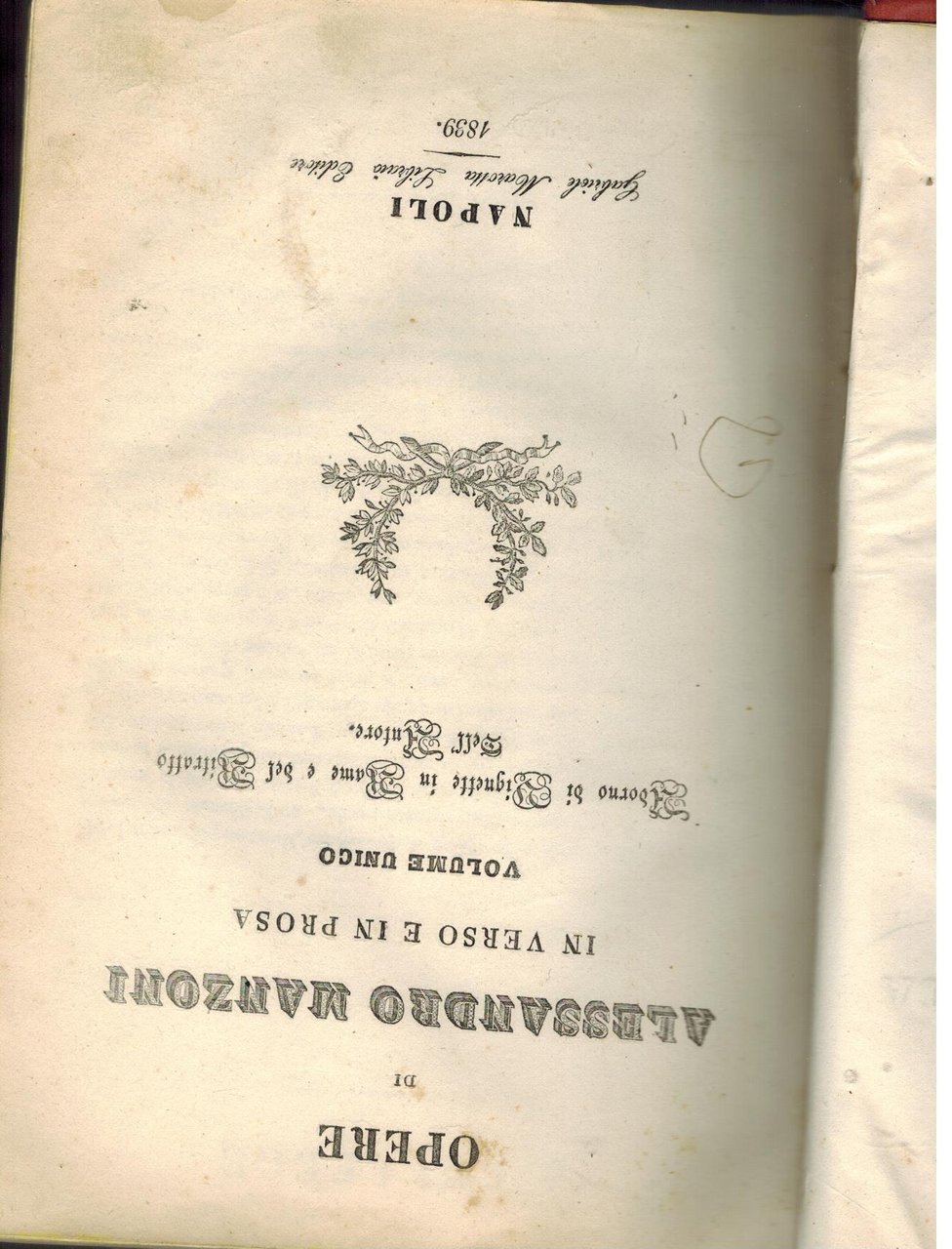 in ottime condizioni!Edizione 1839 In 8 (cm 16 x 24,5), pp. 638 + (2) con ritratto di Manzoni inciso all'antiporta, primo frontespizio generale con vignetta incisa, 8 tavole fuori testo con vignette incise in litografia tratte dalla Storia lombarda di Cesare Cantu'. Diffuse fioriture sparse alle pagine. L'ultimo foglio, con l'indice, presenta uno strappo riparato con nastro adesivo. Legatura coeva in mezza pelle con segni d'uso. Comprende le seguenti opere: I Promessi Sposi; Osservazioni sulla morale cattolica; Il Conte di Carmagnola; Adelchi; Poesie varie. Testo su due colonne.