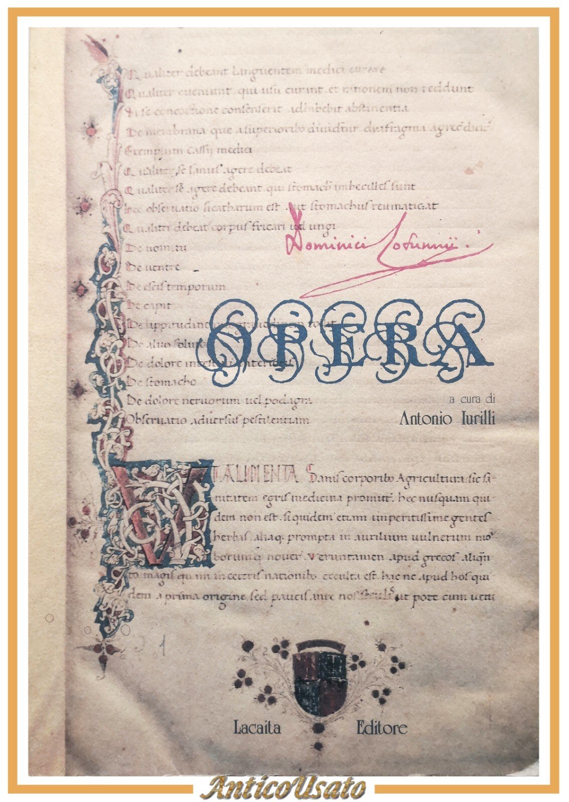 OPERE di Domenico Cotugno a cura Antonio Iurilli 1986 Lacaita Libro medicina