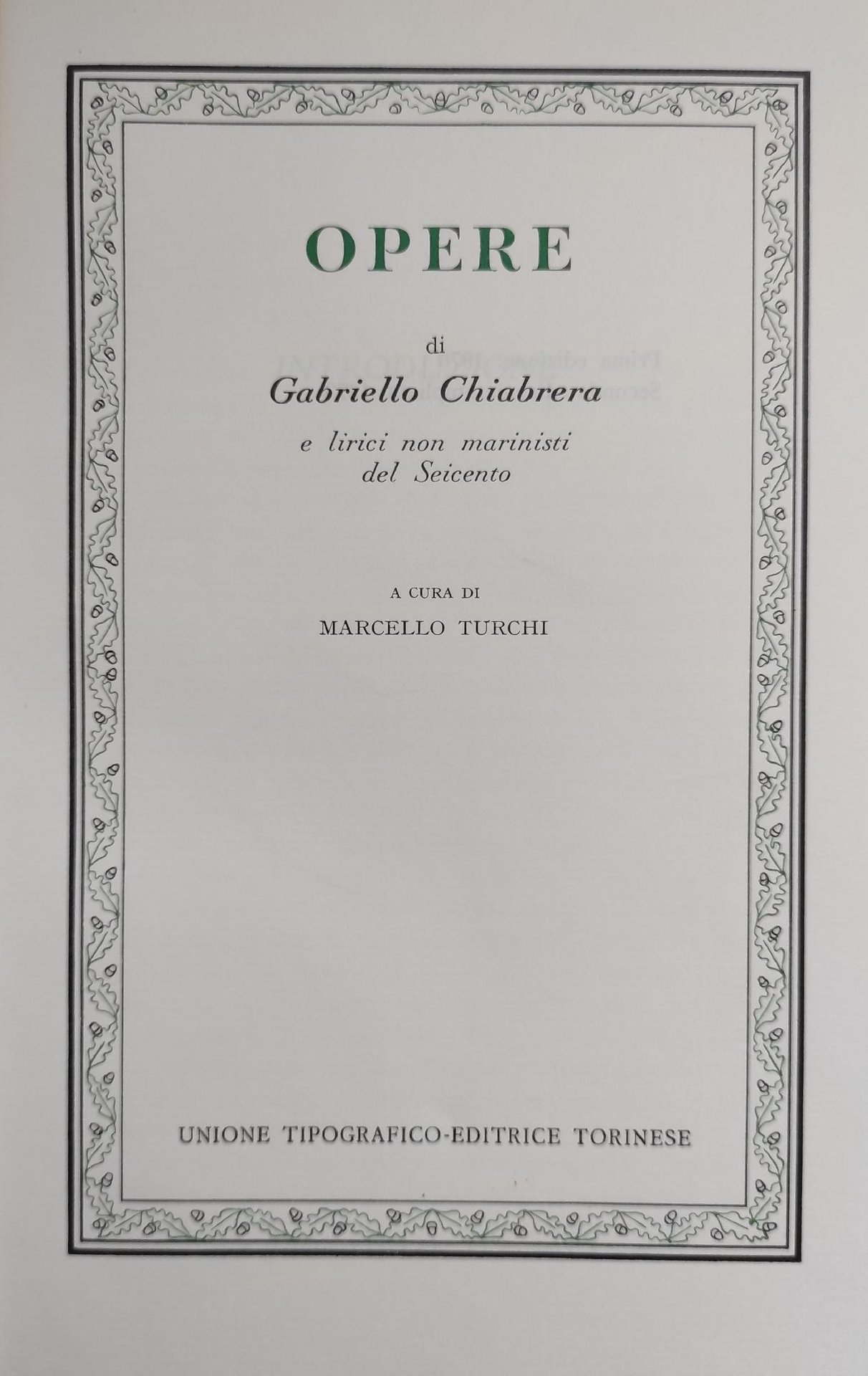 OPERE DI GABRIELLO CHIABRERA E LIRICI NON MARINISTI DEL SEICENTO