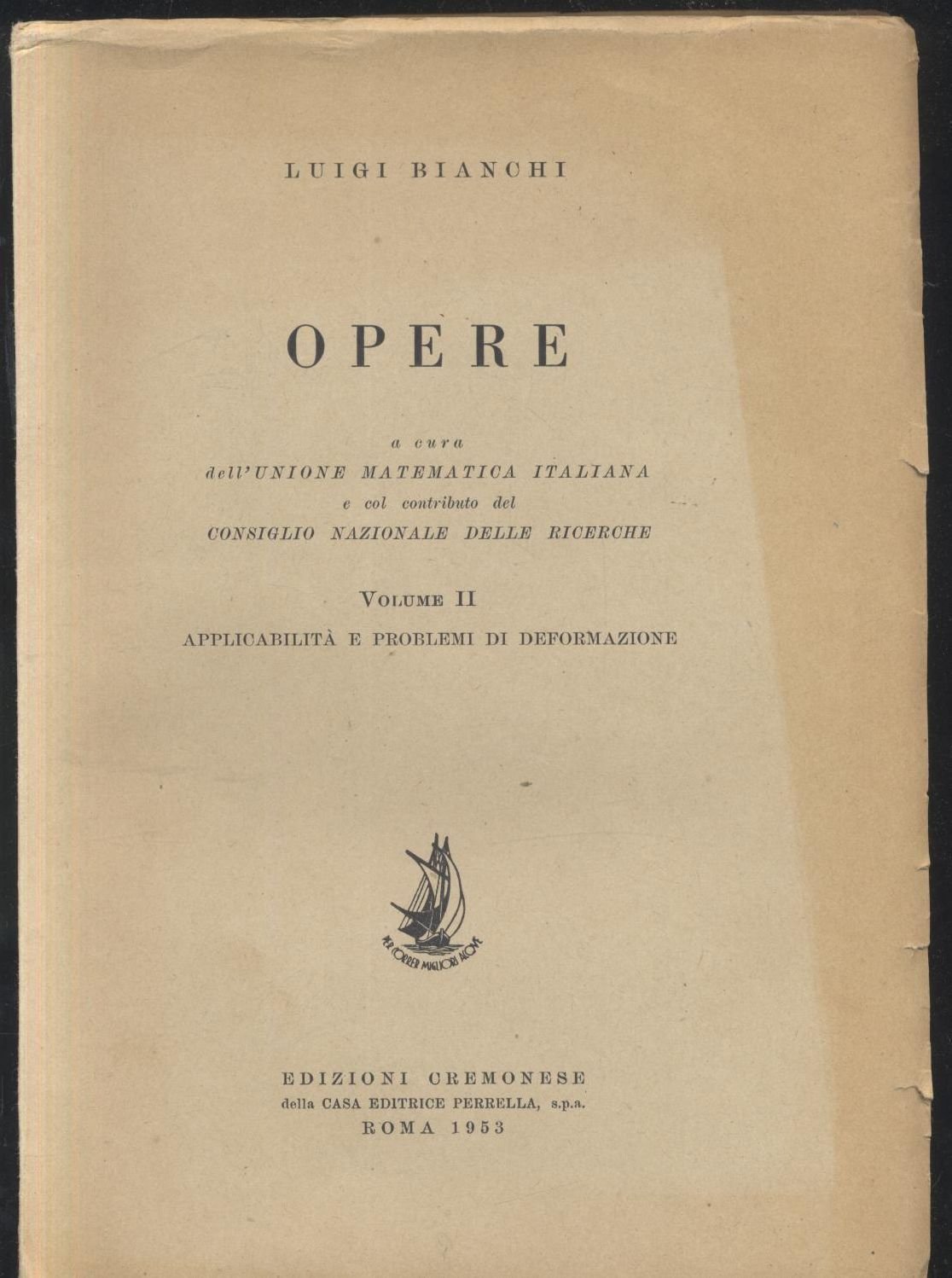 OPERE DI LUIGI BIANCHI Volume 2 1953 A Cura Unione Matematica Italiana Libro
