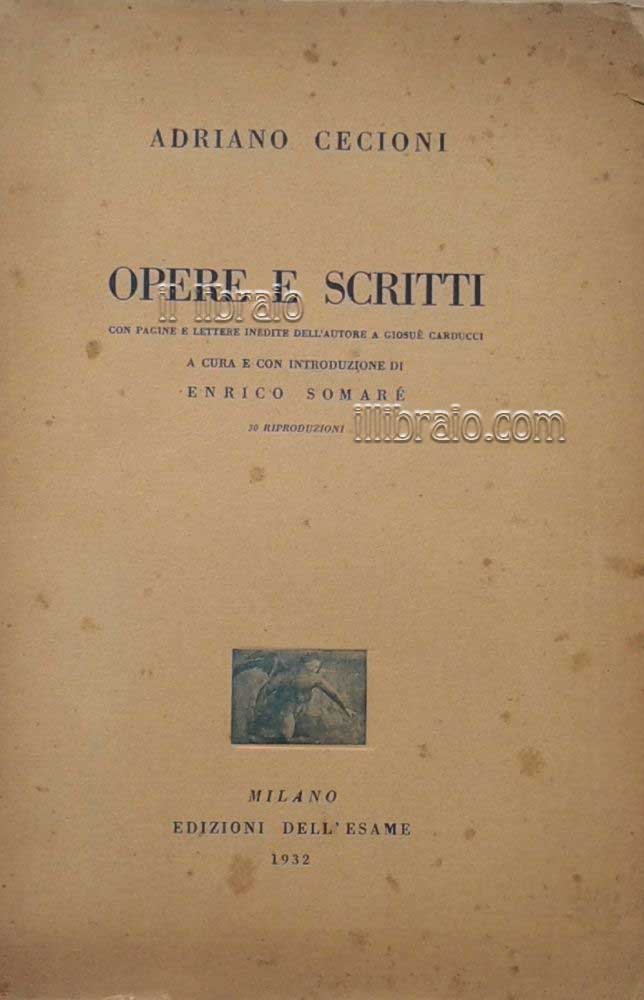 in 4°; pp. XXXVII, 344 + 31 tavv. (ill. bn.); br.; 1^ ed. A cura e con introduzione di Enrico Somarè. Con pagine e lettere inedite dell'autore a Giosuè Carducci. Adriano Cecioni (Firenze 1836 -1886) scultore, pittore e scrittore d'arte. Fece parte del gruppo dei Macchiaioli del caffe' Michelangelo. Raccolta di scritti che formano un prezioso contributo alla storia dell'arte italiana della seconda metà dell'800