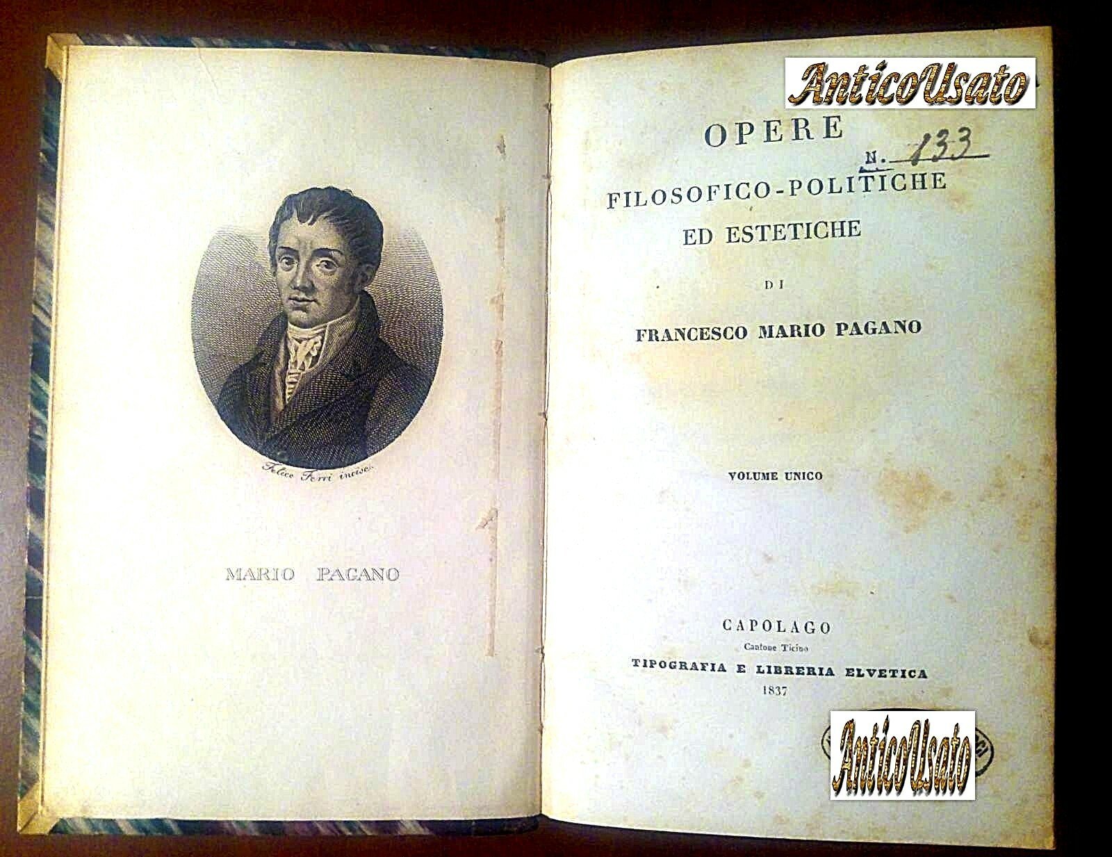 OPERE FILOSOFICHE POLITICHE ED ESTETICHE di Francesco Pagano 1837 Elvetica Libro