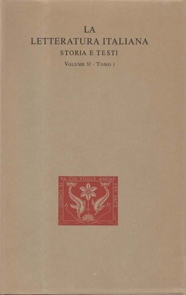 In 8°, t.t. edit. (solo alcune fioriture al d.) con sovracc. (lievi tracce d'uso) e astuccio edit. muto, pp. XXXVIII,1104,(4); coll. "La letteratura italiana. Storia e testi. Volume 52 - Tomo I"; conserva schedina edit., copia molto buona. (z032)