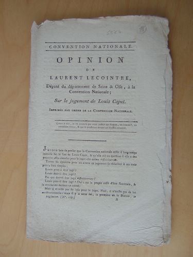 Opinion de Laurent Lecointre, Député du Département de Seine & Oise, à la Convention Nationale; sur le Jugement de Louis Capet