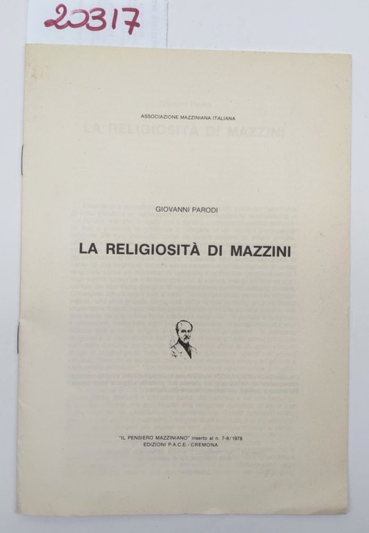 opuscolo Giovanni Parodi La religiosità di Mazzini il pensiero mazziniano 1978 P.A.C.E