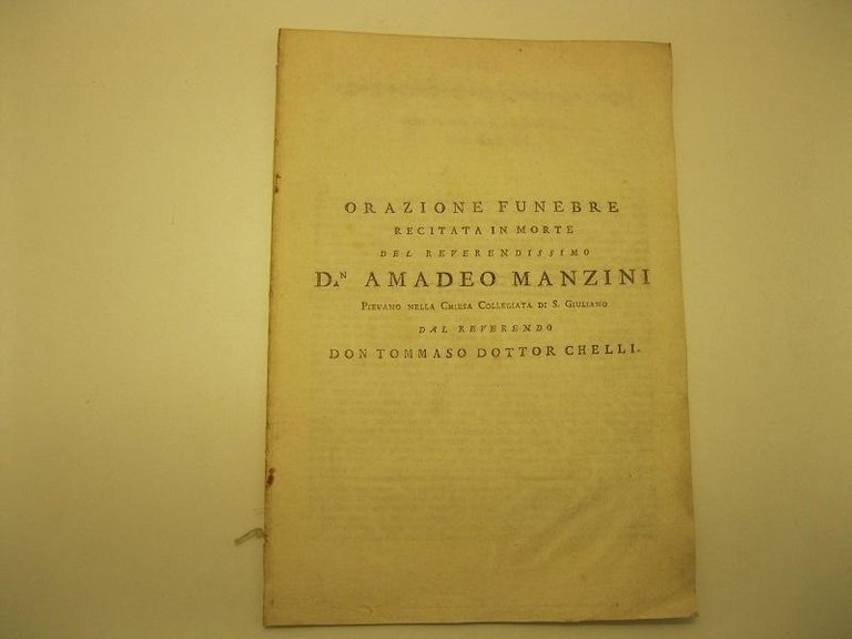 Orazione funebre recitata in morte del reverendissimo Don Amadeo Manzini, Pievano nella Chiesa Collegiata di S. Giuliano dal reverendo Don Tommaso dottor Chelli