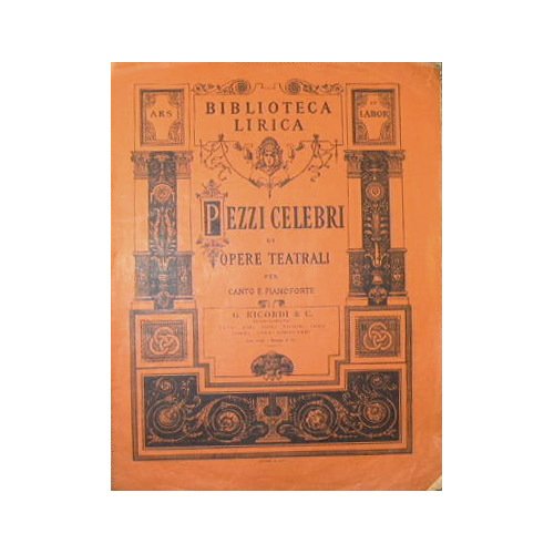 Aria ' Che farò senza Euridice ' - Collana Biblioteca lirica. Pezzi celebri di opere teatrali per canto e pianoforte - in 4° - pp.4 - Brossura editoriale con copertina illustrata - Strappetto al margine. Buono nel resto. - N.P. 54387