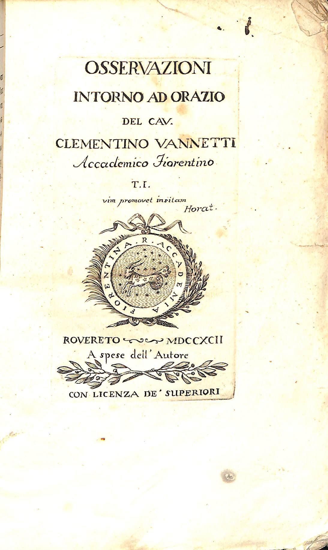 Osservazioni intorno ad Orazio del cav. Clementino Vannetti accademico fiorentino. Tomo 1 + 2