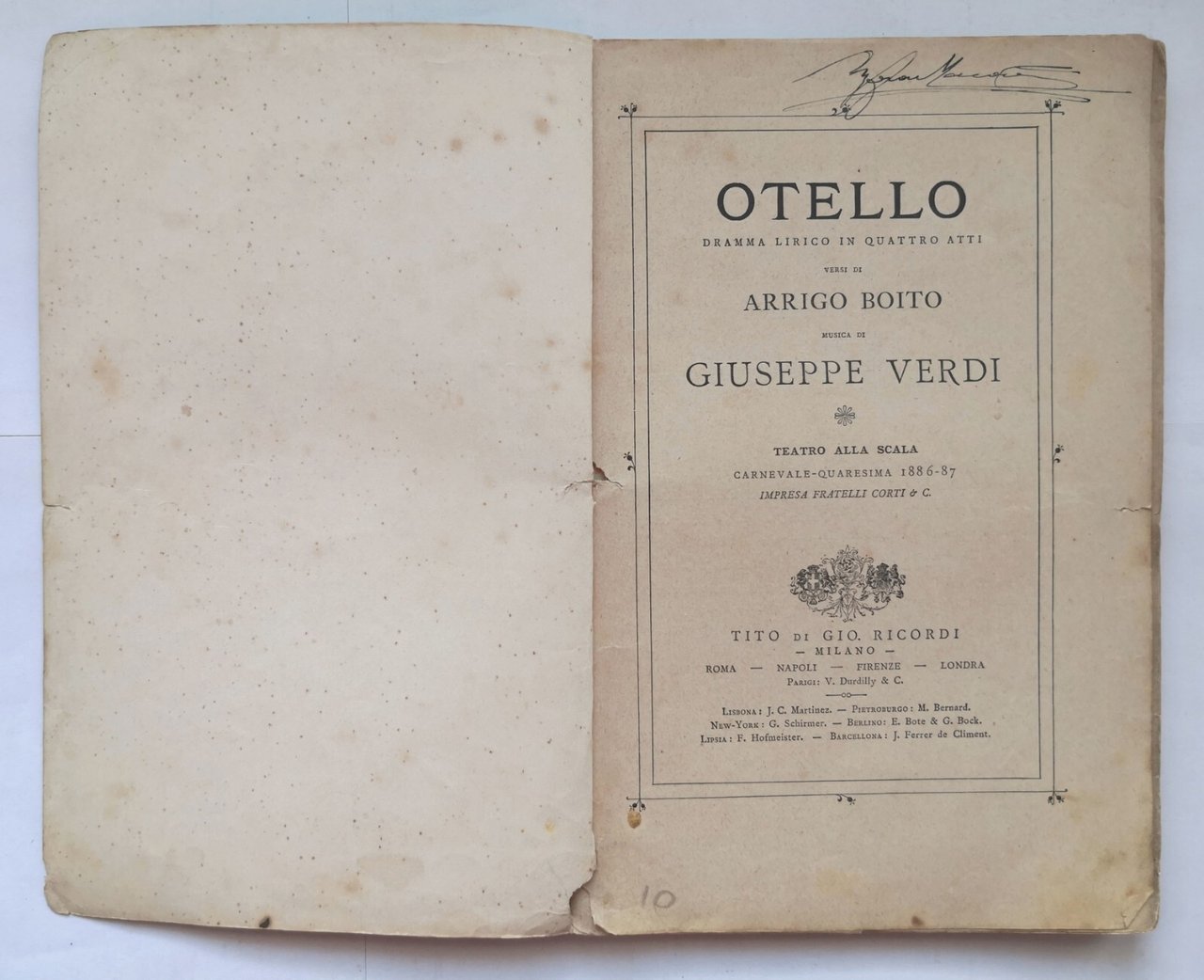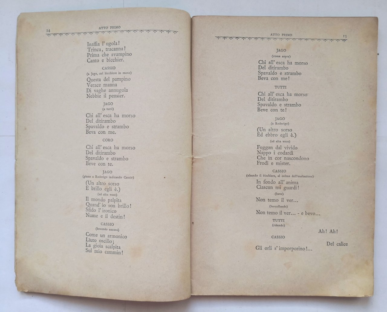 Libretto d'opera (solo testo) OTELLO dramma lirico in quattro atti. Versi di Arrigo Boito, musica di Giuseppe Verdi.