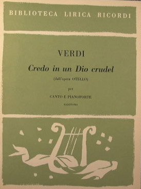 Atto II. Monologo ' Credo in un Dio crudel ' - Collana Biblioteca lirica - in 4° - pp.7 - Brossura editoriale con copertina illustrata - Stato di nuovo - Versione per canto e pianoforte. N. P. 51144