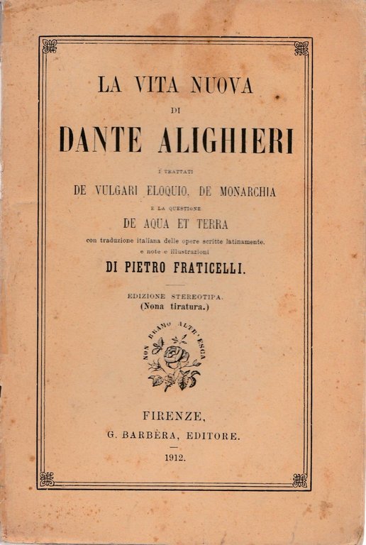 P. Fraticelli La Vita Nuova Di Dante Alighieri Barbera Ed. 1912 Ii∞ Volume L5702