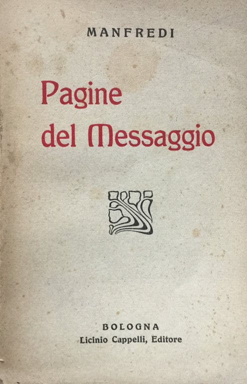 Cm. 19, br. edit., 321 pp. Piccola menda e strappetto al dorso, rade fioriture sulla cop. ma buon esempl. con alcuni ff. ancora uniti. 1920 16 Buono (Good) Buono