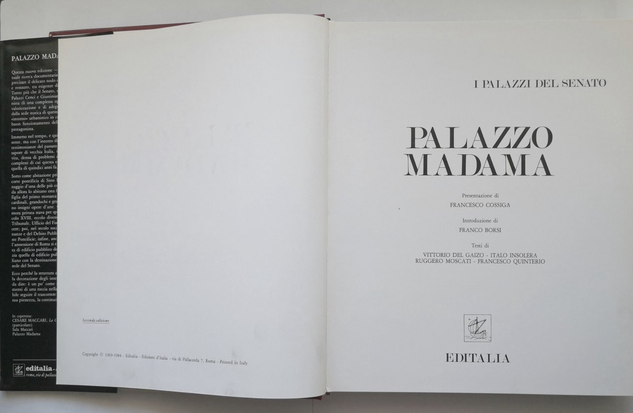 Editore Editalia, 1984. Collana "I Palazzi del Senato".