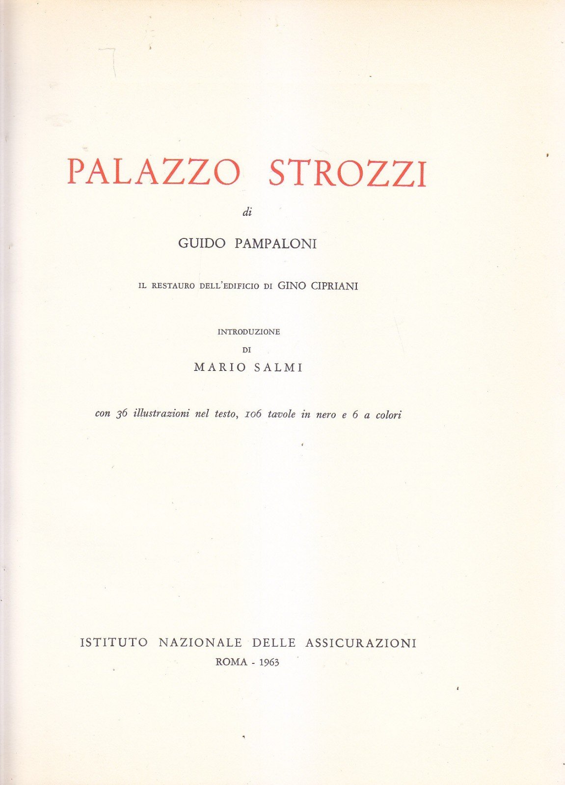 PALAZZO STROZZI di Guido Pampaloni 1963 Istituto Nazionale delle Assicurazioni *