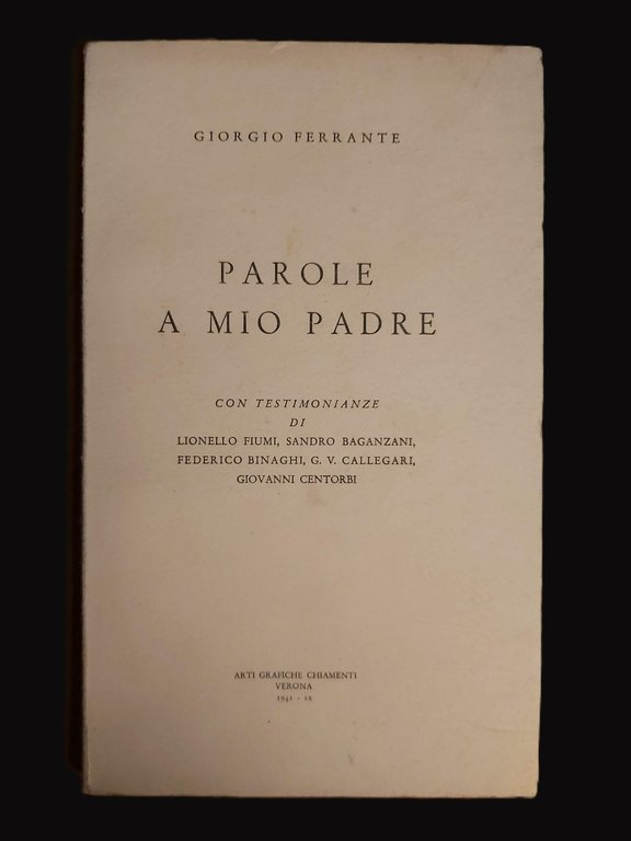 PAROLE A MIO PADRE. Con testimonianze di Lionello Fiumi, Sandro Baganzani, Federico Binaghi, G.V. Callegari, Giovanni Centorbi.