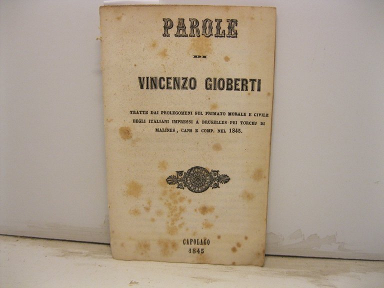 Parole di Vincenzo Gioberti tratte dai prolegomeni sul primato morale e civile degli italiani, impressi a Bruselles pei torchj di Malines, Cans e comp. nel 1845