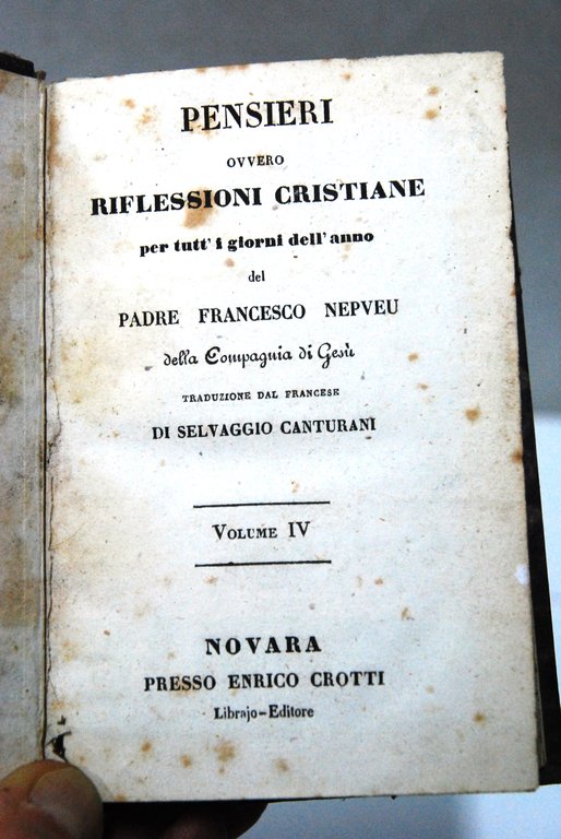 Pensieri Riflessioni Cristiane per tutt'i Giorni dell'anno Della Compagnia Di Gesù trad. di selvaggio canturani vol. IV 311 pp