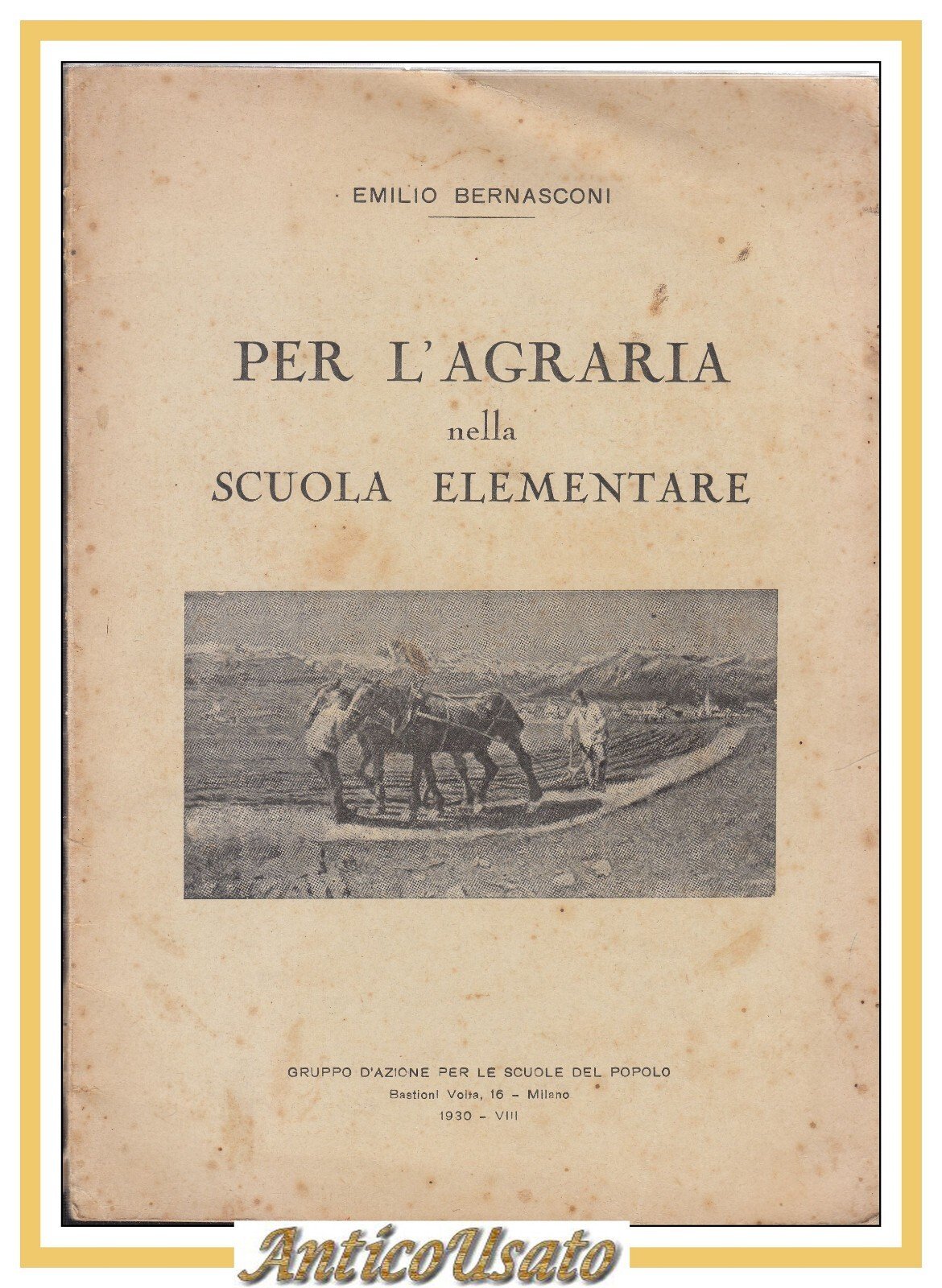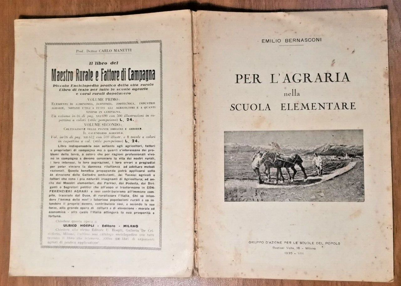 PER L'AGRARIA NELLA SCUOLA ELEMENTARE di Emilio Bernasconi 1930 libro fascismo
