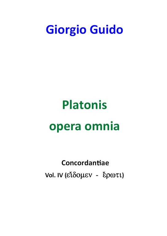 Quarto dei dodici tomi dedicati all'Opera omnia di Platone. Essi costituiscono i primi volumi di Concordantiae, una collana rivolta ai testi di opere di autori antichi, latini e greci, noti e meno noti, che si propone di mettere a disposizione degli studiosi uno strumento altamente professionale, efficace e affidabile, nonché economico, per le ricerche di tipo terminologico e concettuale sulla base delle edizioni critiche più recenti, normalmente utilizzate nelle ricerche filologiche. Ogni tomo contiene le concordanze lessicali di tutte le opere di Platone, secondo la classica edizione oxoniense in cinque volumi di J. Burnet, edita all'inizio del XX sec. L'opera completa, in XII volumi, una volta completata, sarà l'edizione moderna delle concordanze di tutte le opere autentiche e spurie, attribuite a Platone, dopo l'edizione ottocentesca del Lexicon Platonicum sive vocum platonicarum index di Friedrich Ast.