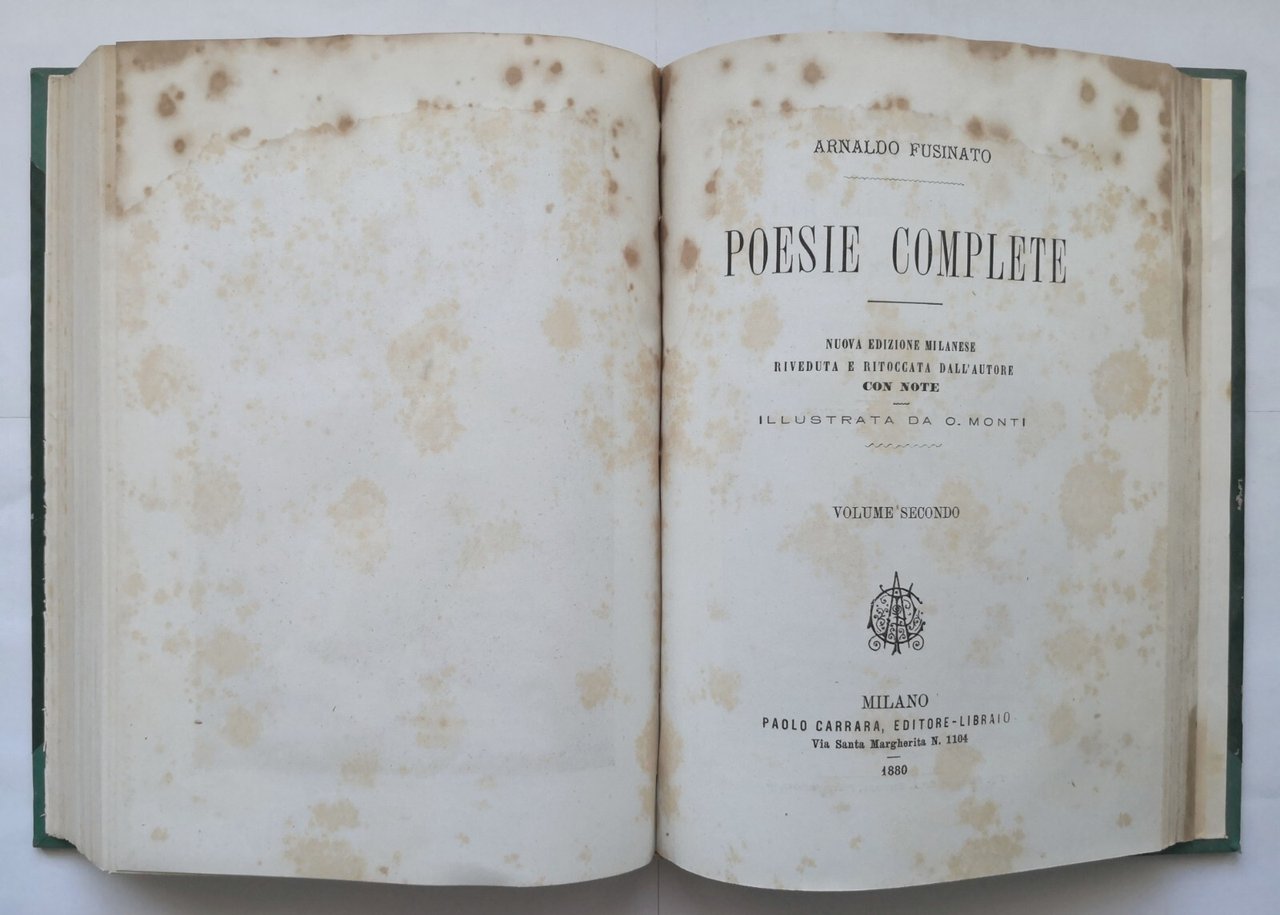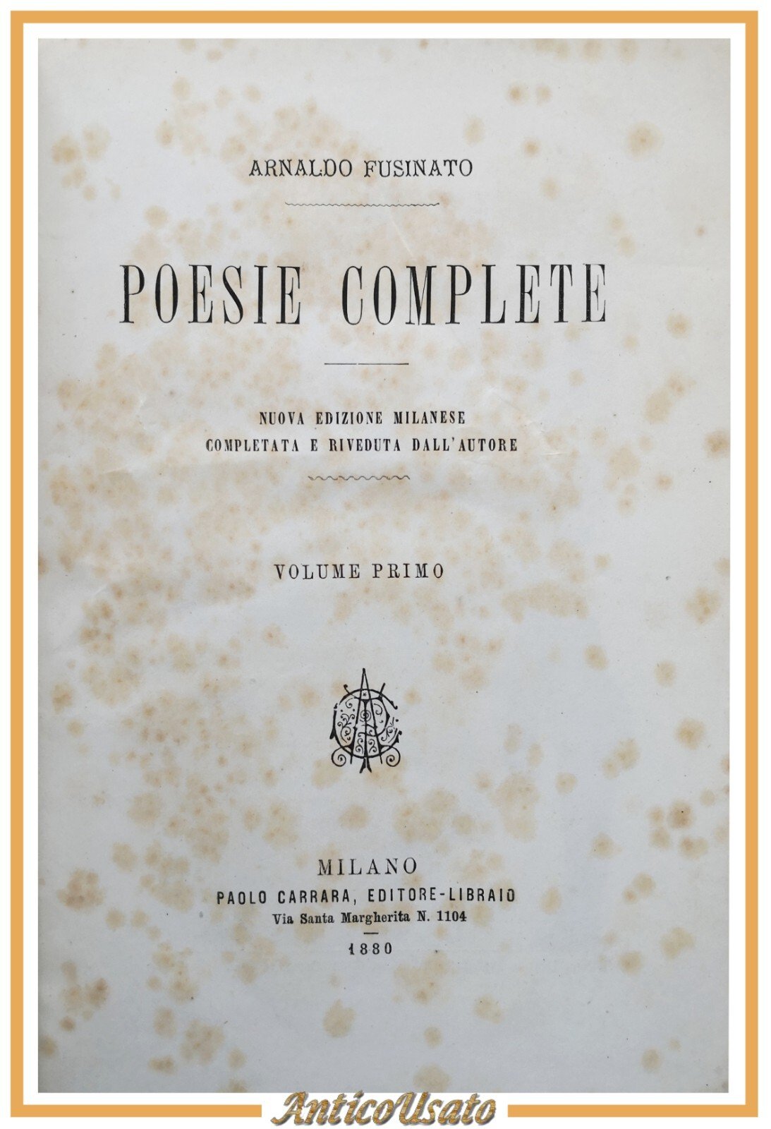 POESIE COMPLETE di Arnaldo Fusinato volume 1 e 2 1880 Paolo Carrara Libro antico