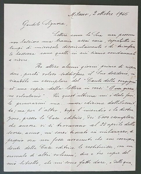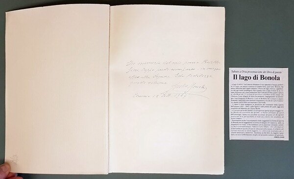 Vol. in -8 (18 x 25,2 cm.), legatura editoriale cartoncino col. avorio con titoli in col. bronzo sul piatto e al dorso, velina trasparente di protezione, pp. 429, (1). Dedica scritta a penna e controfirmata dal fratello dell'autore, in memoria dello stesso, sul primo foglio bianco. In allegato lettera su due pagine controfirmata dall'autore del libro, rivolta ad un amico. Il tutto in buone condizioni (la sola copertina con leggere fioriture marginali).