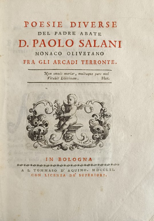 acquaforte all'antiporta do D. Paolo Salani, marca tipografica, capilettera decorati e finalini decorati. in ottavo leg. cart. alla rustica, scritta manoscritta al dorso pp. (XX), 182, (1b) Buono (Good) Buon es..