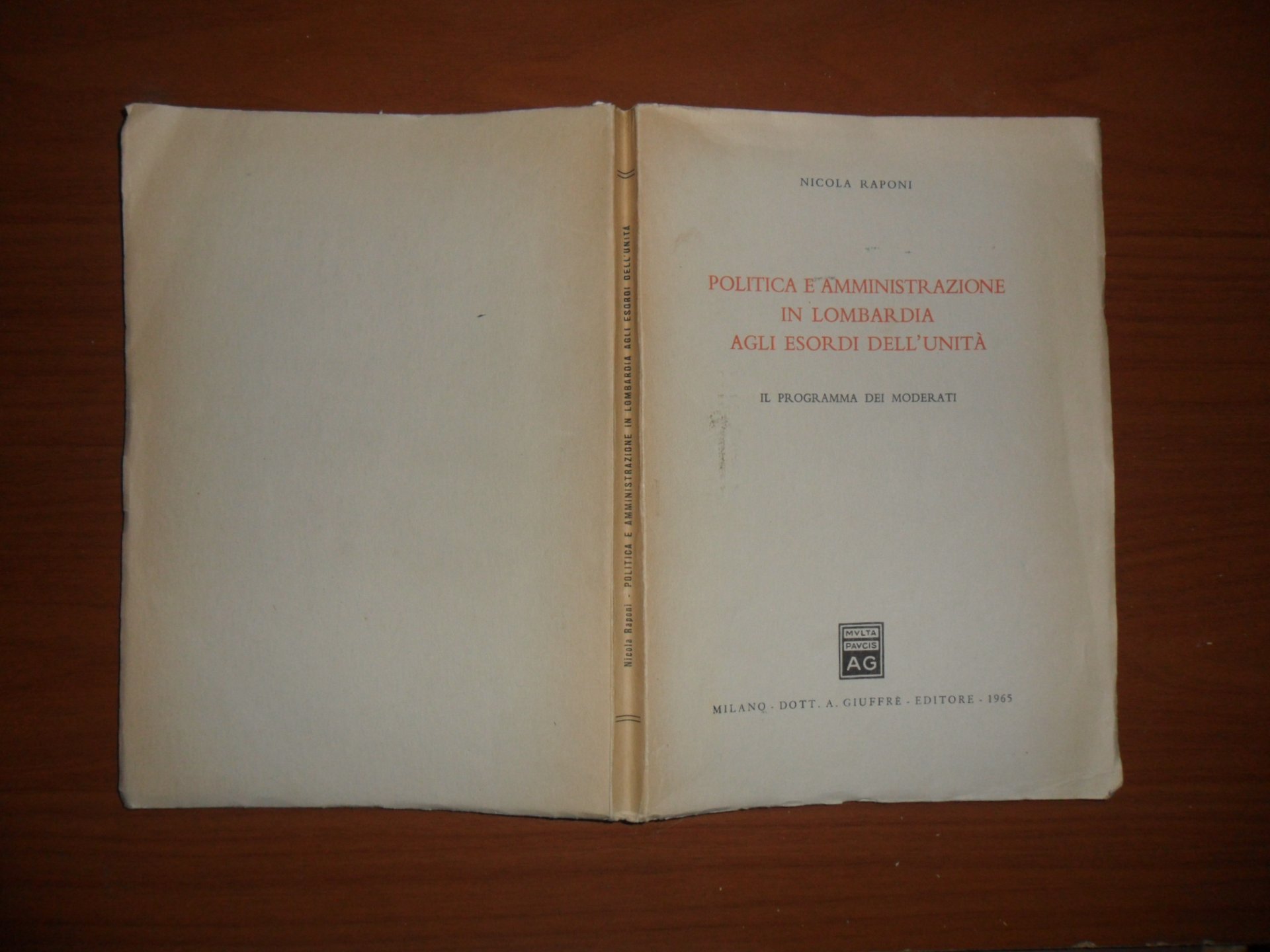 NICOLA RAPONI, Politica e amministrazione in Lombardia agli esordi dell'unità. Il programma dei moderati - Giuffrè, 1965