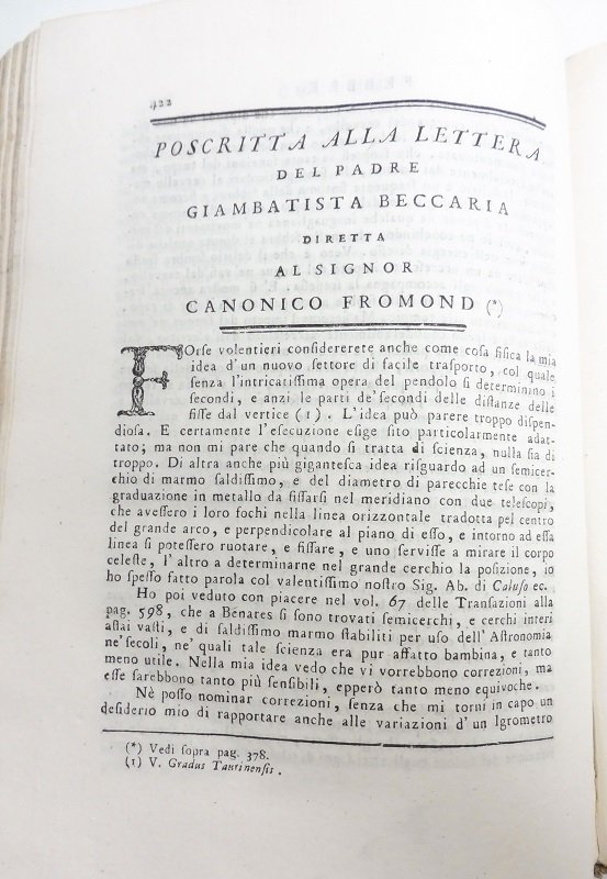 Poscritta alla lettera del padre Giambatista Beccaria diretta al signor Canonico Fromond
