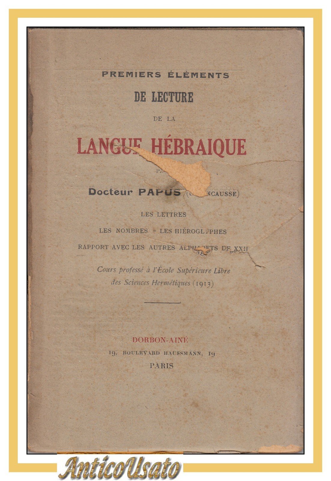 PREMIERS ELEMENTS DE LECTURE DE LA LANGUE HÉBRAIQUE di Papus 1913 libro ebraismo