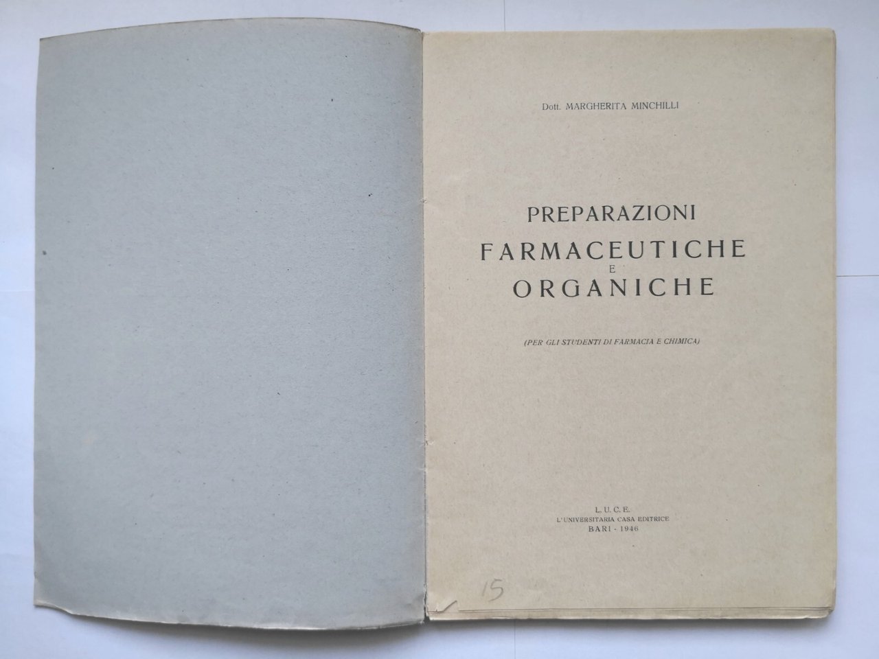 PREPARAZIONI FARMACEUTICHE E ORGANICHE di Margherita Minchilli 1946 LUCE Libro