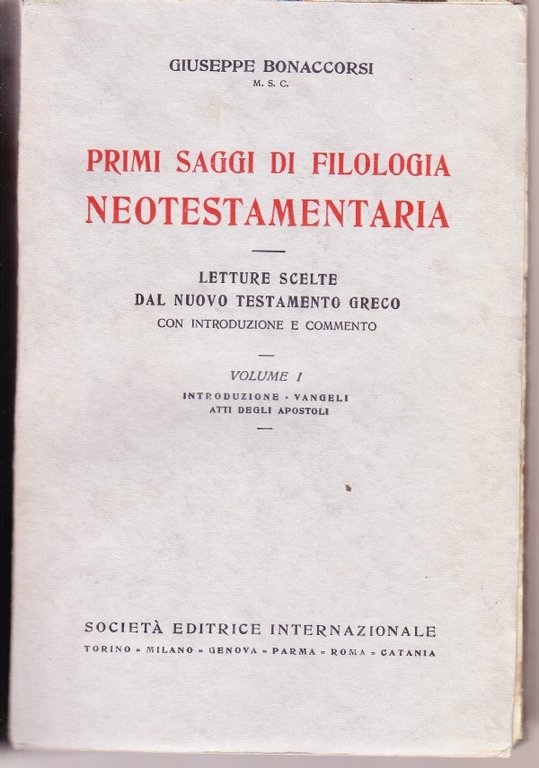 Primi saggi di filologia neotestamentaria. Letture scelte dal Nuovo Testamento greco, con introduzione e commento. Vo.ume I: Introduzione - Vangeli - Atti degli Apostoli