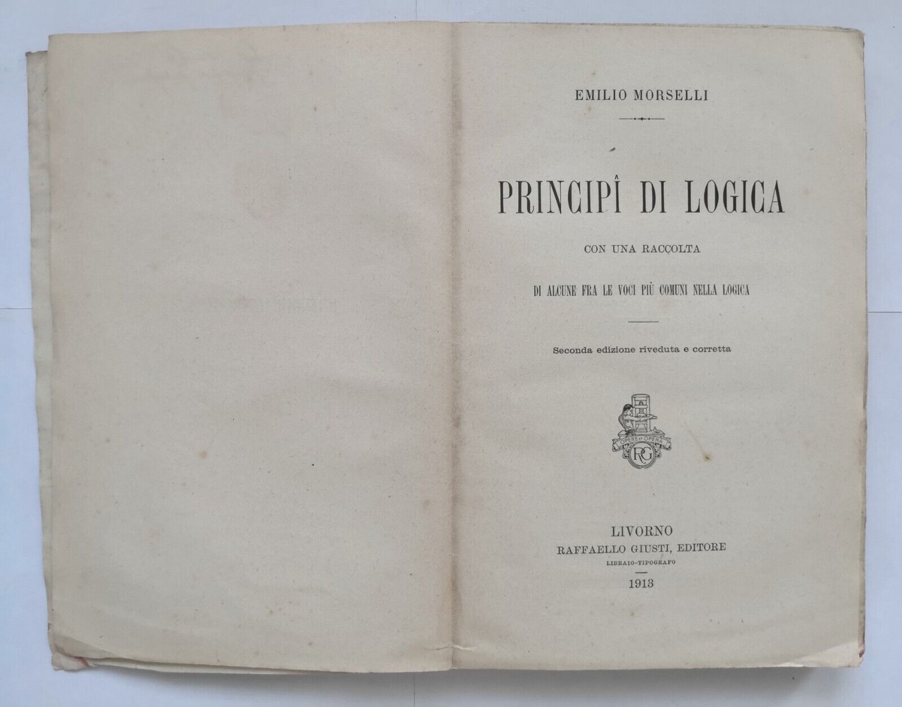 PRINCIPI DI LOGICA Emilio Morselli 1913 Raffaello Giusti Libro raccolta voci