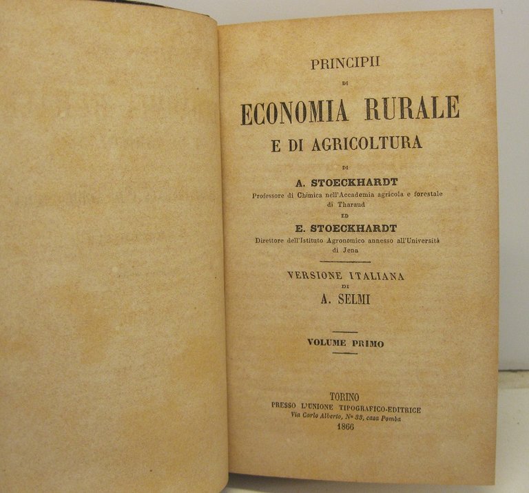 Principii di economia rurale e di agricoltura di A. Stoeckhardt professore di chimica nell'Accademia Agricola e forestale di Tharaud ed E. Stoeckhardt direttore dell'Istituto Agronomico annesso all'Universita' di Jena. Traduzione di A. Selmi