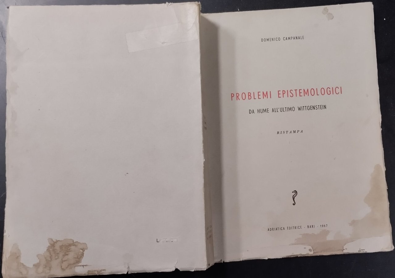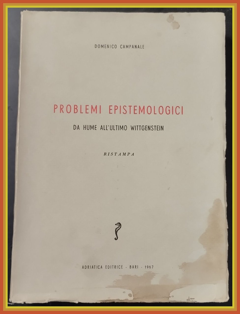 PROBLEMI EPISTEMOLOGICI DA HUME ALL'ULTIMO WITTGENSTEIN di Campanale 1967 Libro