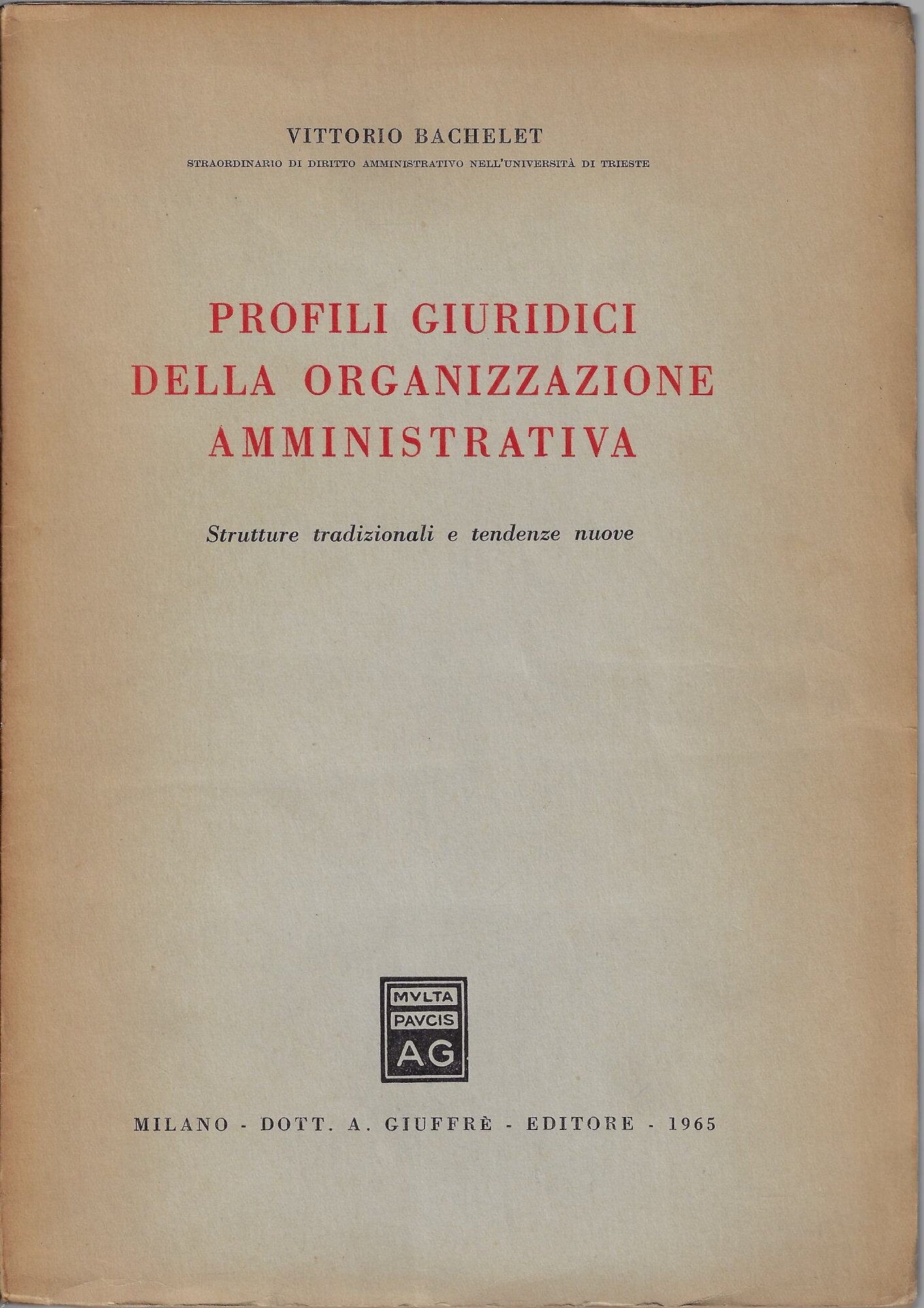 Profili giuridici della organizzazione amministrativa : strutture tradizionali e tendenze nuove