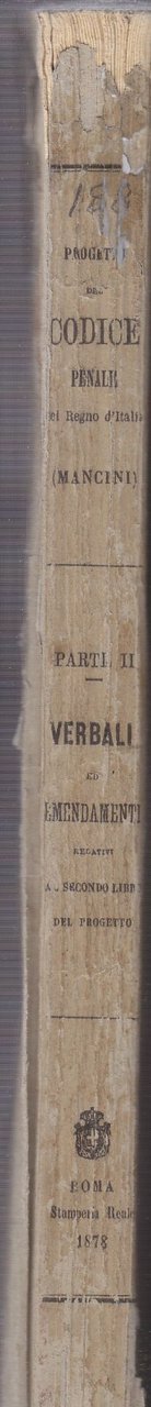 PROGETTO DEL CODICE PENALE DEL REGNO D'ITALIA. Lavori della commissione istituita con decreto del 18 maggio 1876 dal ministro guardasigilli (Mancini).