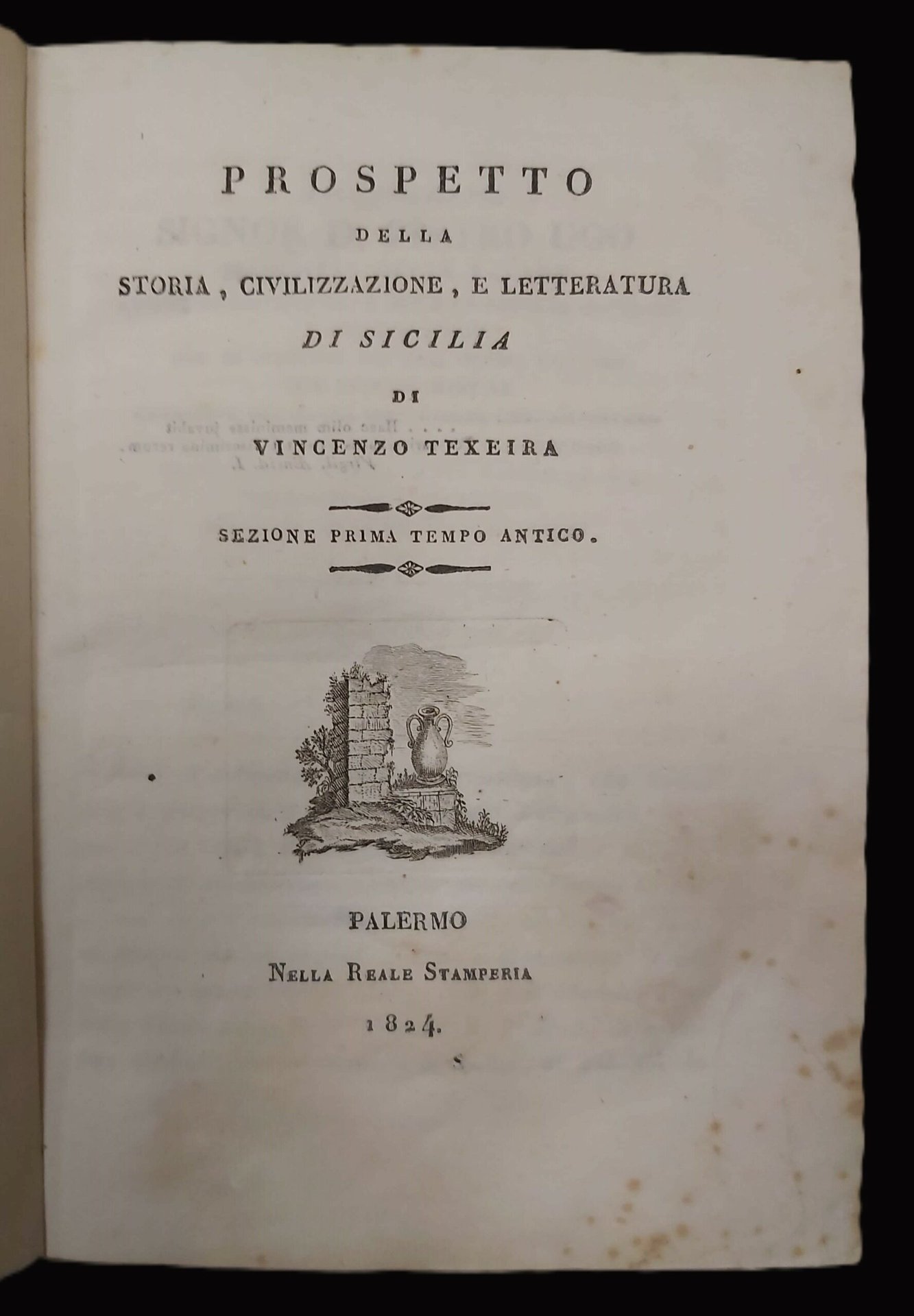 PROSPETTO della storia, civilizzazione e letteratura di Sicilia. Sezione prima tempo antico. Palermo, Reale Stamperia, 1824. Unito: ANNOTAZIONI ED AGGIUNTE alla storia letteraria di Sicilia.