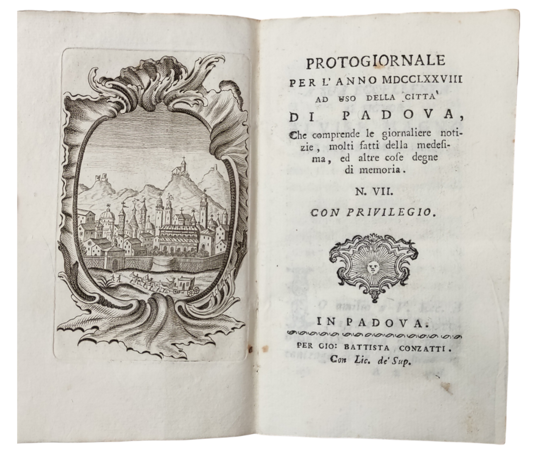 PROTOGIORNALE PER L'ANNO MDCCLXXVIII AD USO DELLA CITTÀ DI PADOVA, CHE COMPRENDE LE GIORNALIERE NOTIZIE; MOLTI FATTI DELLA MEDESIMA, ED ALTRE COSE DEGNE DI MEMORIA. N. VII