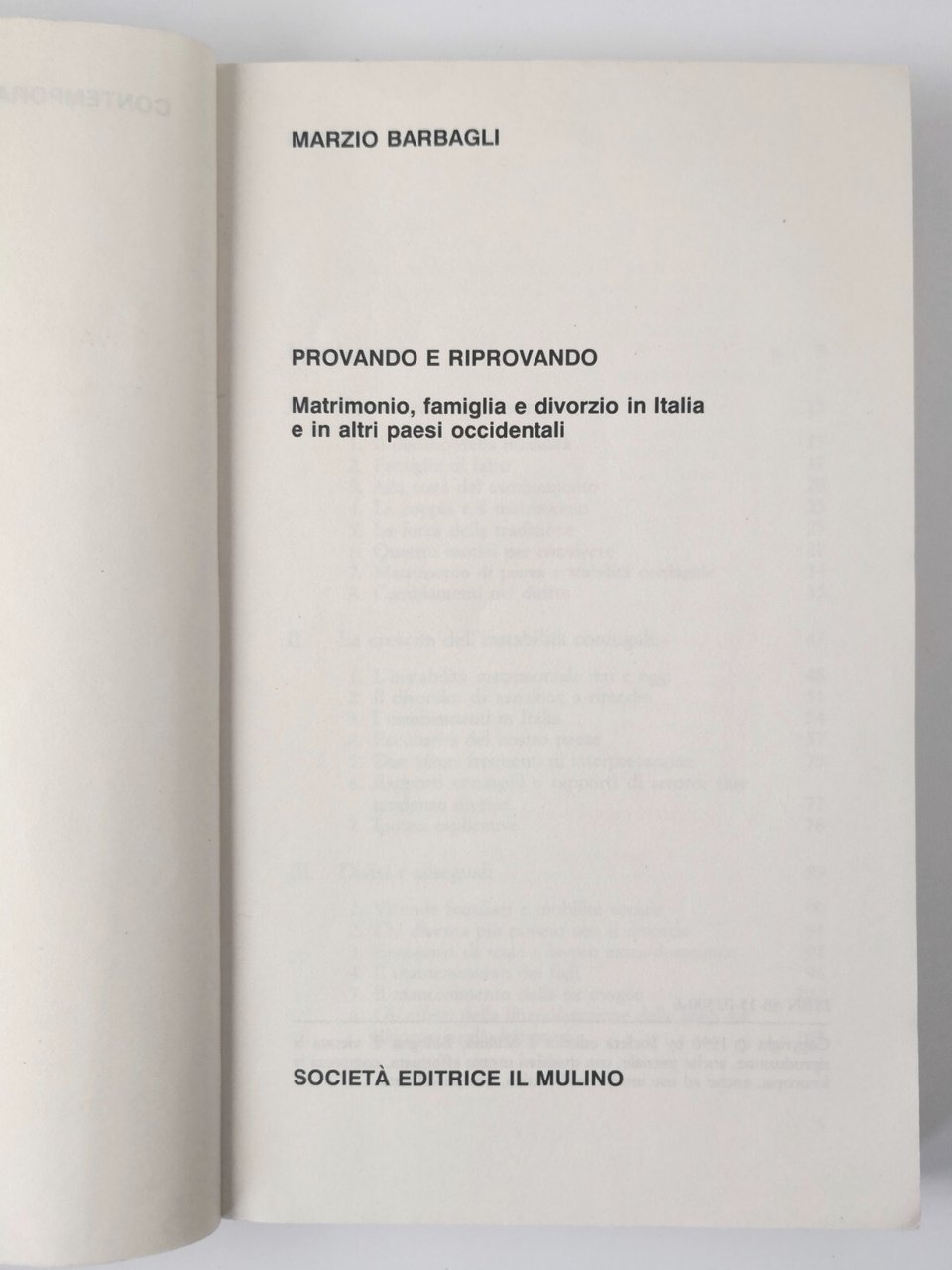 PROVANDO E RIPROVANDO di Marzio Barbagli 1990 Il Mulino matrimonio famiglia