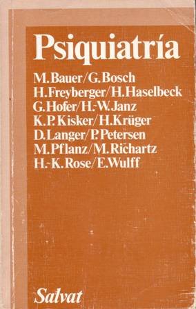 Psiquiatría. Textos para a preparación de psiquiatría clínica y social, epidemiológica psiquiátrica, psicosomática, psicoterapia y trabajo de grupos, y una colección de preguntas y respuestas para que el lector aprenda sistemáticamente. M. Bauer. G. Bosch. H. Freyberger. H. Haselbeck. G. Hofer. H.-W. Janz. H. Krüger. D. Langer. P. Petersen. M. Pflanz. M Richartz. H.-H. Rose. E. Wulff. Con 9 figuras y 15 tablas.