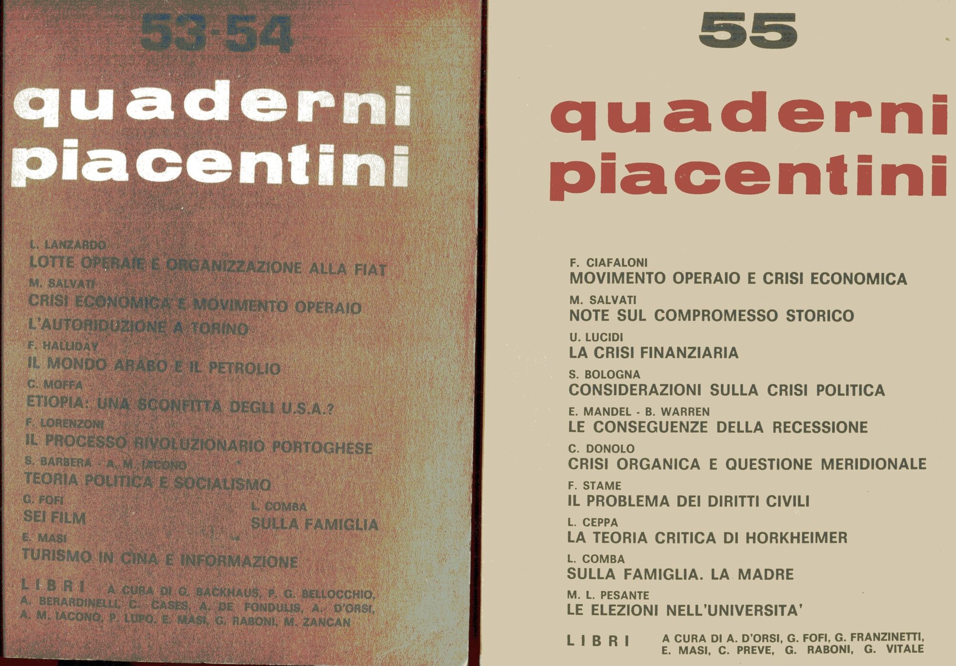 Quaderni piacentini. Periodico bimestrale. Anno XIII, n. 53-54, Anno XIV n, 55