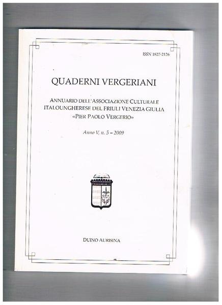 Quaderni Vergeriani. Annuario dell'associazione culturale Italoungherese del Friuli Venezia Giulia "Pier paolo Vergerio" anno V° n° 5 2009. Umanisti, eruditi e collaboratori italiani alla corte di Sigismondo di Lussemburgo; geopolitica dell'alto Adriatico allì'epoca di Mattia Corvino; ecc.