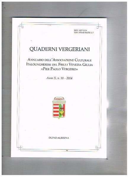 Quaderni Vergeriani. Annuario dell'associazione culturale Italoungherese del Friuli Venezia Giulia "Pier paolo Vergerio" anno X° n° 10 2014. Il patriarca di Aquileia Bertoldo di Andeches; il risorgimento italiano in alcuni esempi della storiografia ungherese del '900; ecc.