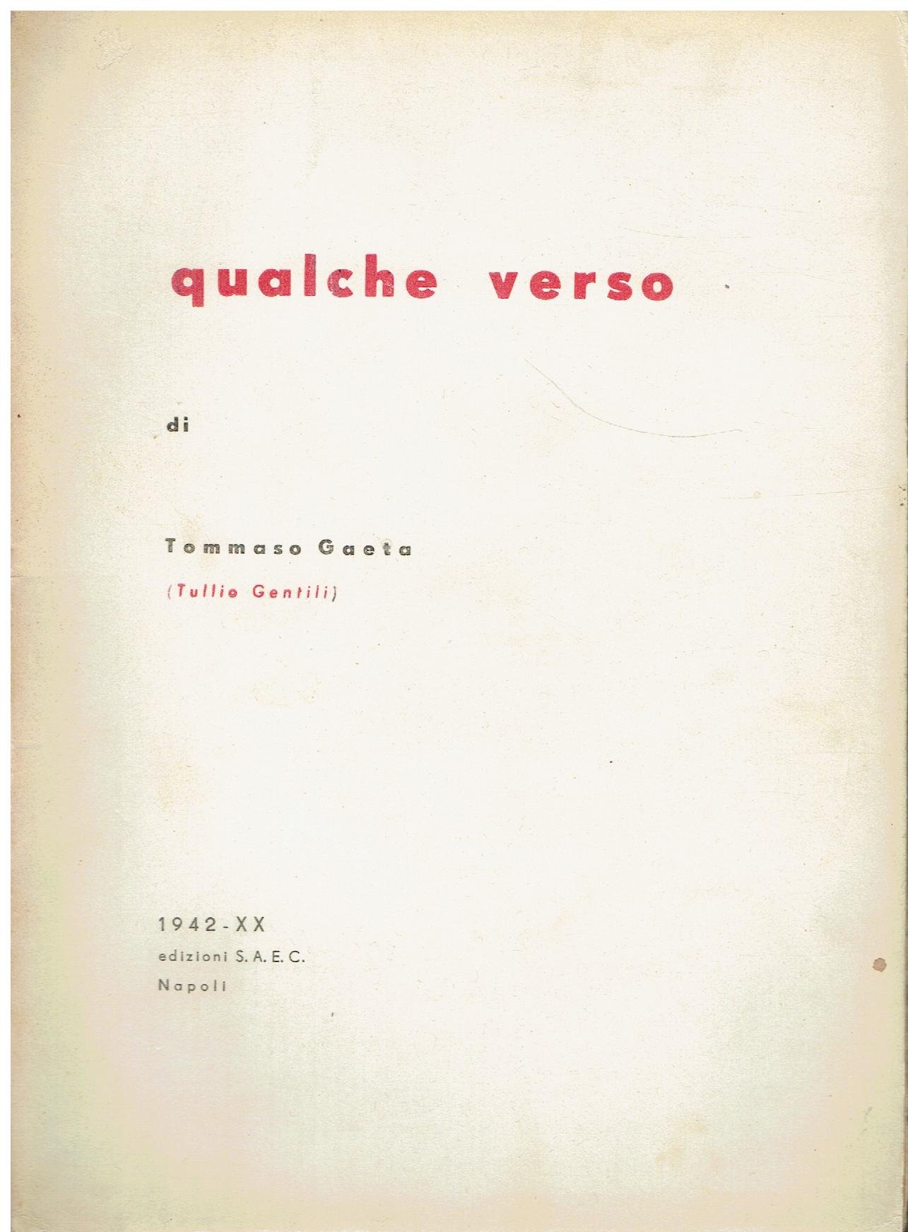 Ed. S. A. E. C, 1942. Con dedica di Tommaso Gaeta. Brossura. brossura Buono (Good) segni del tempo, piccole pieghe ai bordi della sovracopertina, ingiallimento.