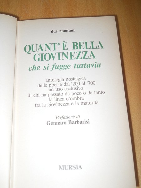 AA VV, Quant'è bella giovinezza che si fugge tuttavia. antologia - Mursia, 1981