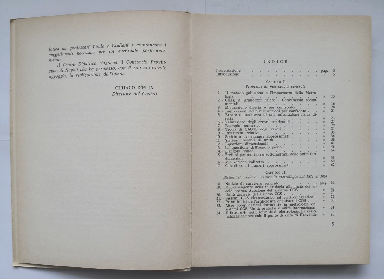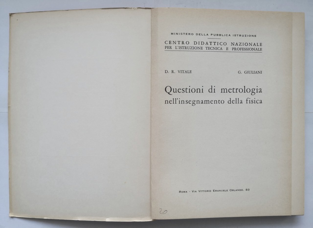 QUESTIONI DI METROLOGIA NELL'INSEGNAMENTO DELLA FISICA Vitale Giuliani 1965 libr