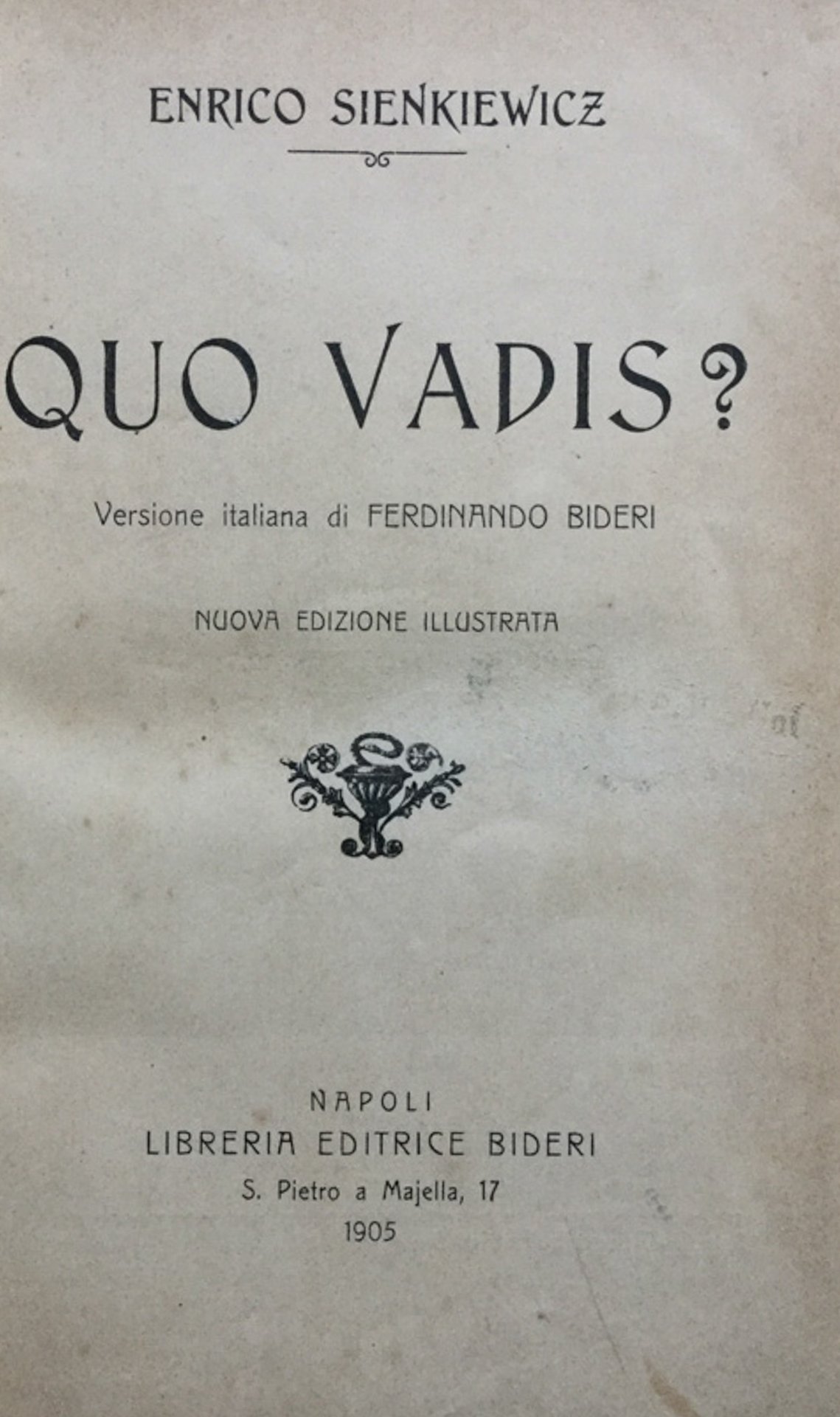 Napoli, Libreria Editrice Bideri, 1905, in 8vo. Legatura editoriale, 279 pp. ill. in nero f.t. Versione italiana di Ferdinando Bideri. 891 - V In Ottavi (15-23cm ) Buono (Good) Buono